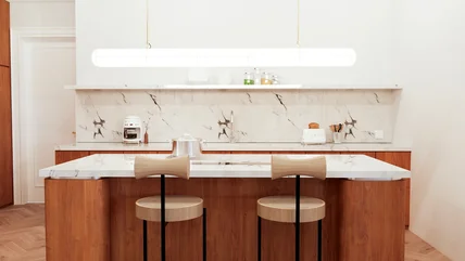 One kitchen island trend we're in love with is setting them up with bar stools. It transforms plain workspaces into functionally decorated islands meant for meals and conversations, instantly making small kitchens feel warmer and more welcoming. That coziness can quickly turn into clutter with a few bad decisions, however. Chowhound asked Kristin Harrison, the founder, principal designer, and creative director at Georgia & Hunt Design House, what the most common mistake people make when zhuzhing a kitchen up with bar stools. Her answer was surprisingly simple: We overcrowd the space.