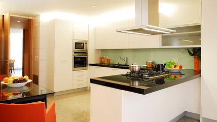 Okay, so we know repainting walls or adding glass surfaces won't physically give you more spots to store that heirloom china set. But the aesthetic aspects of your C-shaped kitchen can create an illusion of more breathing room — call it psychological space. Smart color and finish choices can take even the most cluttered-feeling C-shaped kitchen from dark and severe to light and airy. And if your C-shaped kitchen has plenty of ambient light, color can bring a welcome warmth to a space in danger of feeling square and sterile.