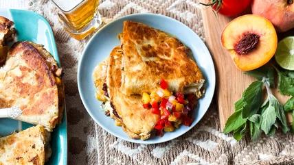 Sweet and Spicy Peach Chicken Quesadillas Recipe