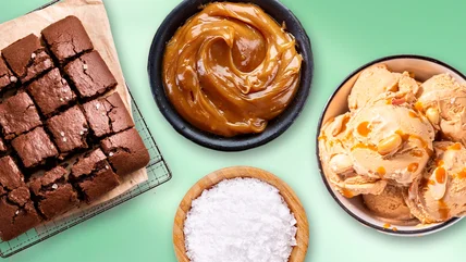 Joanne Gallagher, recipe developer at Inspired Taste, recommends adding flaky or coarse sea salt to caramel, saying it "lets its crunch and flavor pop." It can also offer a unique visual contrast against the torrent of caramel sauce on something like a cookie, brownie, or scoop of ice cream.