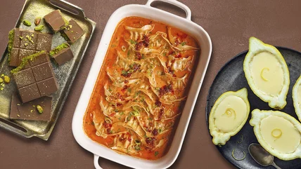 Summer isn't usually the season of cozy foods, but in late summer 2025, the Trader Joe's dumpling bake sent the internet into a comfort-food frenzy. This is mostly because of how easy it is: Trader Joe's dumplings are baked in a casserole dish along with Thai red curry sauce, Trader Joe's Soyaki sauce, garlic, and a few garnishes like green onions, cilantro, and chili crunch. It's a low-effort dinner that can be made with other grocery store products, too, if you don't live near a Trader Joe's. Some people add coconut milk while others just use water, but that's up to you.