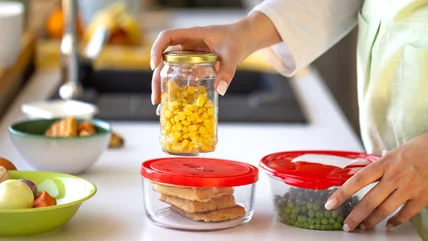 Durable, eco-friendly glass containers will help you clear up space in your kitchen since they safely store foods of all types without picking up stains or odors. While there are plenty of things you should know before thrifting vintage Tupperware due to the possible presence of hazardous materials, food-grade glass containers aren't likely to react or leach chemicals into your food. Buying several of the same set also brings consistency into the kitchen, making them easier to stack and store.