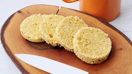Microwave it in short bursts: 30 seconds, then 15 more until it sets. Every microwave behaves differently, so there is a touch of roulette in the process. Once cooked, let it cool for a minute. That pause is when the crumb firms up and decides whether it will be bread or rubber. Slice it, butter it, and eat it warm, preferably while still marveling that it actually worked.