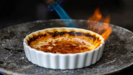 "I think that applies to a lot of desserts, but simplicity is key. It should be approachable and straightforward, with a clean flavor profile," he says. "I guess I'm a bit of a purist; I prefer my crème brûlée lightly flavored with vanilla so the burnt caramel topping can really shine." Fire that sugary top just right and it'll gleam literally, too.