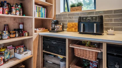 Since these baskets are relatively small and lightweight, they're easy to tuck away between cute canisters of baking essentials, nestle next to your French press on a DIY coffee bar, or set on open shelving between plants or dishware. In these areas, they offer an aesthetic solution to keeping non-uniform items tidy and organized. This might include multiple brands of coffee syrups, extra condiment packets from various types of takeout, or small bags of nuts and dried fruit that go into your oatmeal every morning.