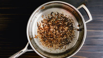 Burnt cookware is not only unsightly and frustrating, but it could also be affecting the quality of your food (making it taste burnt or bitter). And in some cases, consuming burnt remnants of food stuck to your pans, especially nonstick pans, may be a little hazardous to your health. The good news, though, is all you need to do is boil water to loosen up that stuck food and burn marks.