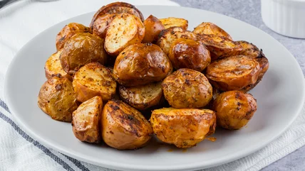 When it comes to cooking potatoes, fat infuses flavor while crisping the surface, but it also helps the spuds heat up. "Consider all those points, flavor, crisp-potential and smoke point, when choosing a fat for roasting potatoes," Bench suggested. "Some fats handle high heat beautifully, some bring the flavor, and others give you a perfect golden crisp." And in her opinion, the best fat to use is actually two fats, each introduced at different points in the cooking process. "I start with a neutral oil with a high smoke point like canola or avocado oil," Bench explained; this coats the potatoes and helps them crisp. "Halfway through cooking [I] add butter or duck fat for flavor," she said.