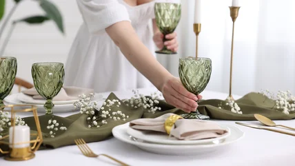 Not everyone needs a large dinnerware set. If you're only hosting a few people, then this four-person set is perfect. Walmart might not be the first place you look for high-end dinnerware, but the brand sells an Oneida Entertain 365 12-Piece Artisanal Stoneware Dinnerware Set for just $39.99 (though it's been on sale for as low as $26). It comes with four dinner plates, four salad plates, and four all-purpose bowls that are great for some soup or an ice cream treat after dinner. The set comes in solid earth tones of blue and green, or a lightly-patterned cream-colored tone with blue-gray lines along the plates' edges. The dishes stack nicely and are heavy duty, too, so they're easy to store.