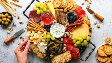 Lastly, once you've carefully selected a wide range of sweet and savory ingredients, follow the golden rule for filling in any charcuterie board. Simply place the larger items on the board first, followed by your remaining, smaller accompaniments.