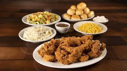 Logan's Roadhouse is the closest in price and variety to Texas Roadhouse – with prices that range between $50 to $55. The chain says its meals serve four to six, but just by appearance we'd suggest planning on the smaller end of that range. Examples include the Steak Dinner (with four 6-ounce sirloins), the Cajun Chicken and Sausage Alfredo Meal, and the Salmon and Shrimp meal (which has two 8-ounce salmon fillets and four shrimp skewers). Most of Logan's Roadhouse's family meals come with two family-sized sides.