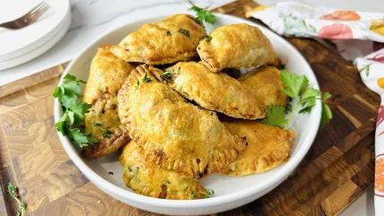"These hand pies are a fun twist on classic chicken pot pie," Rosenhouse says. "I love that they're easy to transport, whether you're packing them for lunch or carting them to a potluck." They're great for meal prepping, too, since you get 20 pastries per batch, and any you don't eat right away can be frozen to consume at a later date. If you're in a hurry, you can heat one in the microwave like a Hot Pocket, which is convenience food's answer to the hand pie. If you have a little extra time, however, baking your pie in an oven or air fryer will help re-crisp the crust.