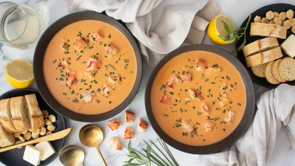 This rich, silky, deeply flavorful lobster bisque features a scratch-made stock and is the most perfectly elegant starter for a special Valentine's Day meal.