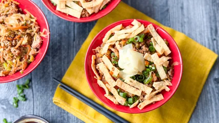 The traditional egg roll filling is the star of the show in our easy deconstructed pork egg roll in a bowl, featuring perfectly seasoned pork and vegetables.