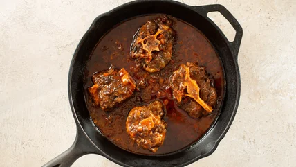When oxtails are cooked at too high a temperature, it causes the muscle fibers to denature and tighten quickly, resulting in a tough, chewy, dry texture that will have your dinner guests running for the hills. Since oxtails are a super tough meat rich in connective tissue and collagen, it's best to cook them low and slow to achieve a scrumptious melt-in-your-mouth texture. Not only will cooking them at too high a temperate make your meat basically inedible, but it could potentially scorch your braising liquid, leaving you with a burnt, unappetizing sauce.