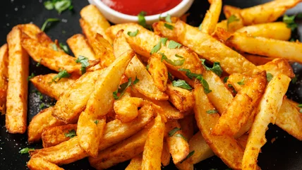 When your fries are hot, fresh, and just out of the fryer, sprinkle them with some mustard powder and give them a good toss. This flavor hack works whether you prefer to cut your own potatoes and make them from scratch or go with store-bought frozen fries.