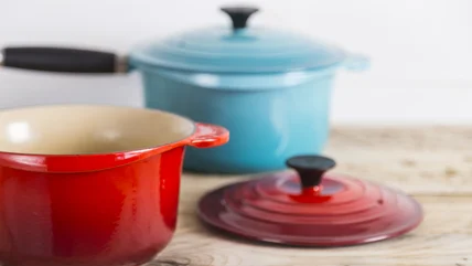 Of course, despite thrift stores usually rejecting seriously damaged items, you should still inspect thrifted Le Creuset pieces for telltale signs of unrestorable damage. One of the most important things to look for is chips, cracks, or pits in the enamel coating, especially if the cast iron underneath is exposed. This could allow moisture under the enamel, and cause rusting that can't be remedied by refinishing the piece. Additionally, if you notice the piece is tilted or wobbly, that could mean the cast iron is twisted or warped, which means it isn't safe to use since it isn't stable. Severe staining may also be a deal-breaker since it can be extremely difficult to remove. So, before thrifting Le Creuset, consider how much work you're willing to put into restoration.