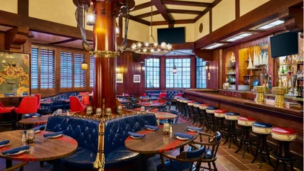 Since a restaurant's atmosphere makes food literally taste better, diners will like the vibe of the place. The walls are clad in dark wood, making it feel like you're stepping into the lower decks of a ship or a mysterious and inviting tavern. The bar is lined with various spirits, and there are even small model ships displayed around the dining area. There's a ship mast in the middle of the room with a crow's nest, showing true commitment to the theme. Meanwhile, the leather couches are upholstered in nautical hues, tying the whole aesthetic together. The nautical influence is also reflected in the menu, with fixtures like a raw bar and plenty of other seafood options.